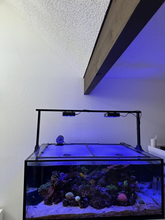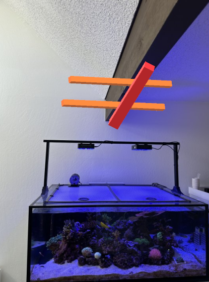 For a tank with my dimenstions (47.3” x 35.4” x 19.7), Luca stated that the ATLAS and Helix bars need to be mounted 10 inch above the water. The ATLAS has a total length of 14.5 inch with reflector, the Helix 1 1/8 inch, so a large discrepancy between the two. Hanging them from the ceiling will solve this easily, which is not an option in my case.