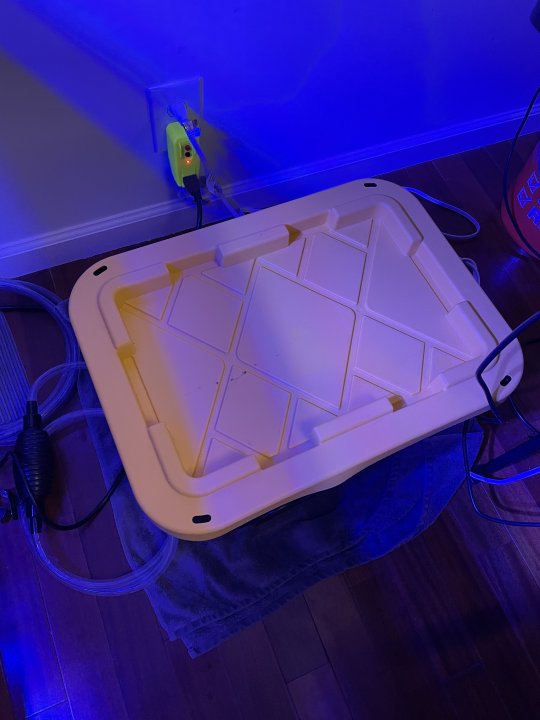 Oh! That’s a great idea! Unfortunately, I’m keeping my tank in my office, which does not have room for totes that big. For now, the 5 gallon buckets are working well.