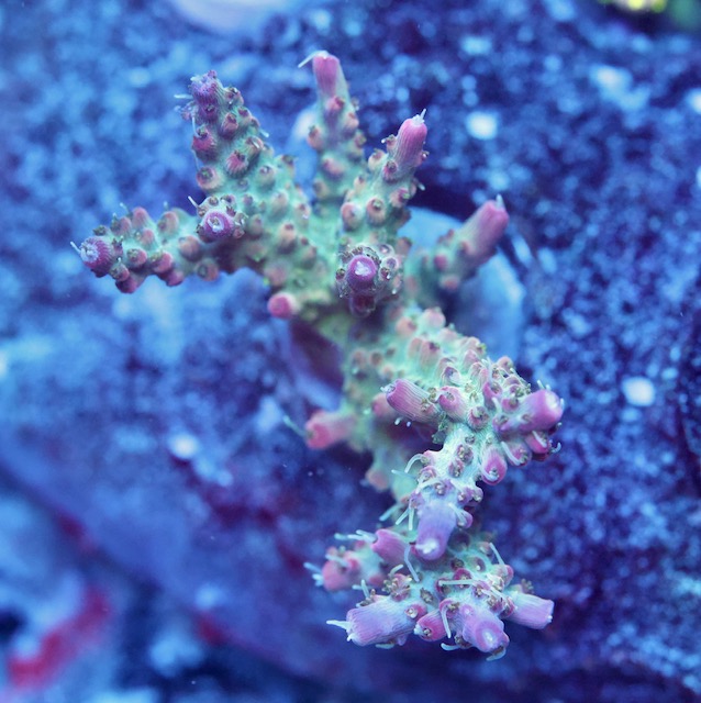 The guy told me it was Garf bonsi not sure with my limited knowledge to know the difference beyond what I was told; beautiful colony by the way.Two vendors had the same looking coral, purple base with bright green polyps, with similar growth patterns. One was labeled garf bonsai and the other was not. My guess is a lot of corals with this appearance are labeled as garf if the specific genealogy is not known.
