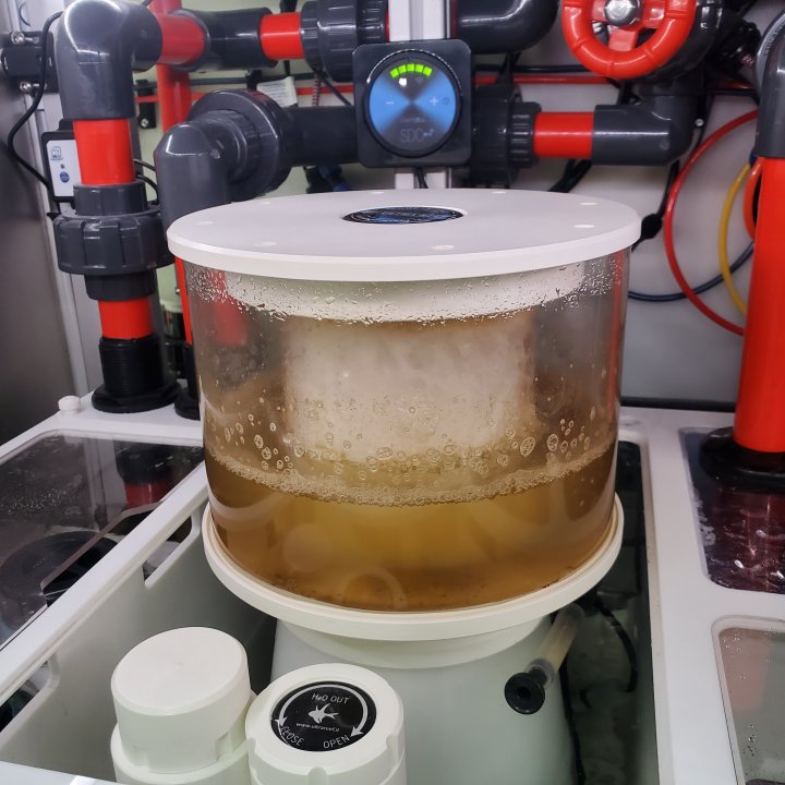First 24 hours in operation and it appears to be holding up well. No overflowing and visibility catching larger particles. I feed quite a bit...reef Jerky 4 timed a day, TDO pellets twice a day, Rods food once or twice a day, depending if I'm home.