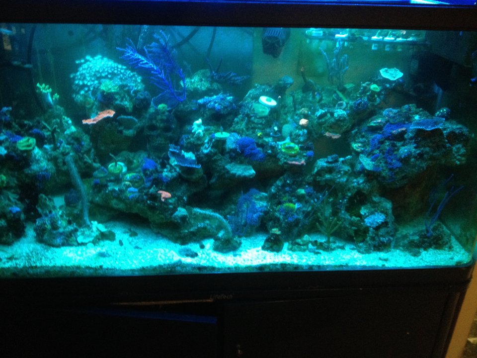 add some reefbrites to those t5s and you'll get the pop!Feel kinda like a kid at Christmas, got the new light fixture hanging. Will have to wait and see what a difference 6 x 39watt t5s have. The color is a little bit different I will have to just wait and see and do a little more research. The blues look a little more green and the coral colors don't pop with just the blues on now. It's a little cloudy from the mornings feeding View attachment 8082