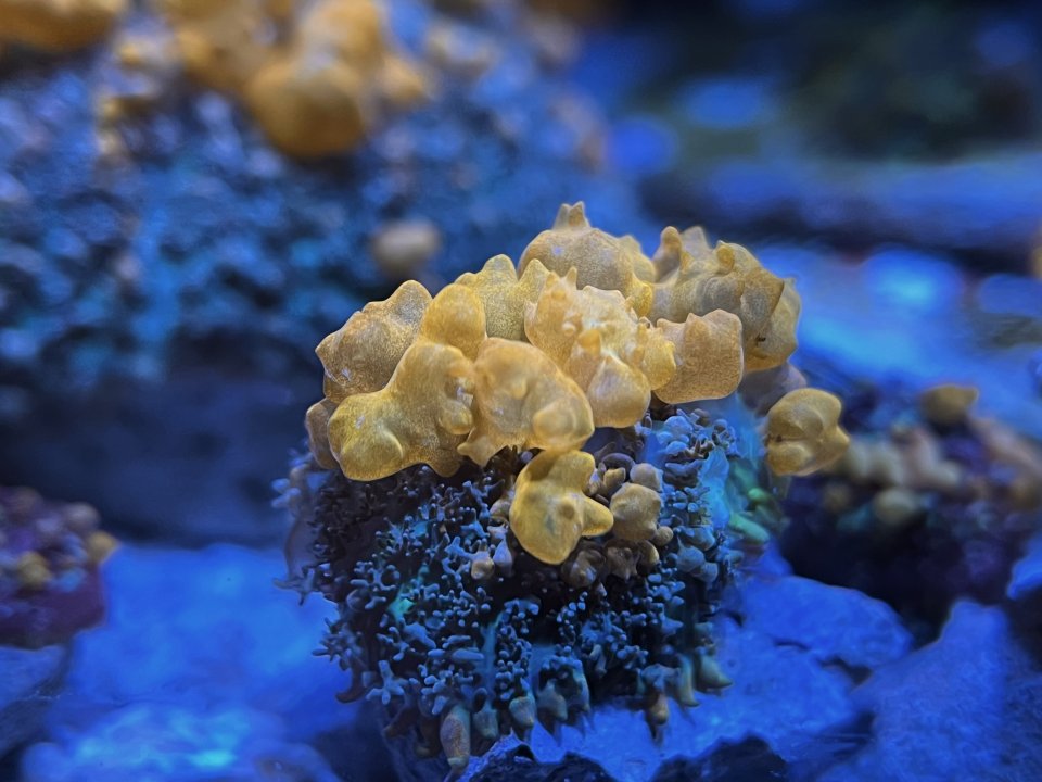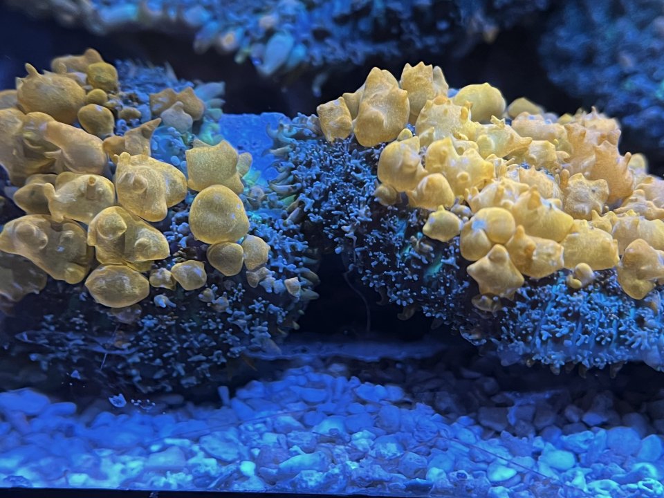 - I have a couple Sunkists that are still pretty small but already bouncing really quite well - a thick ring of bubbles around the whole coral.