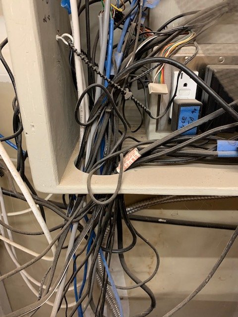 I would call that a rat’s nest of cables, but I don’t think a rat could fit through that hole with all the cables in the way lol
