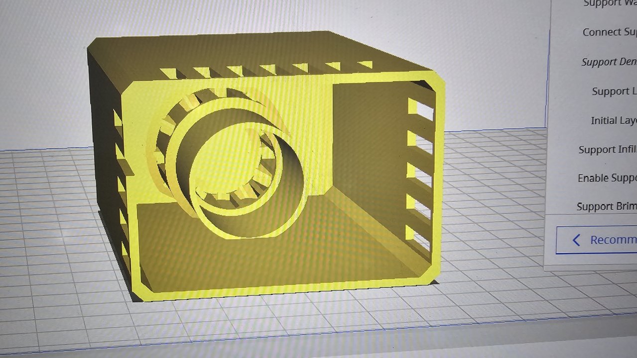 I think that is supposed to nestle the intake of the filterI was looking at printing this for you. Is the inside supposed to have a hole? It has this on the inside...