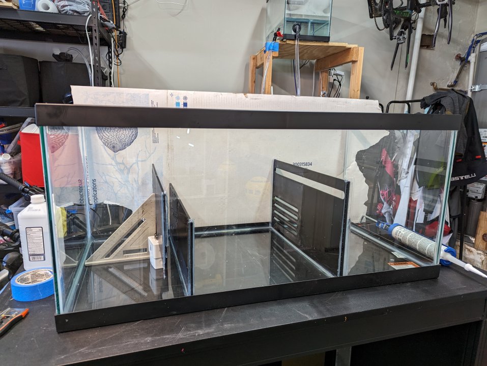 This was my first time doing siliconing, and it turned out good enough. I am waiting for the final panels to dry and will tomorrow give it another test to ensure the return pump water level baffle is secure and water tight. I have tested it once already and it worked great, but I had to redo it because I put the baffle in the wrong spot.