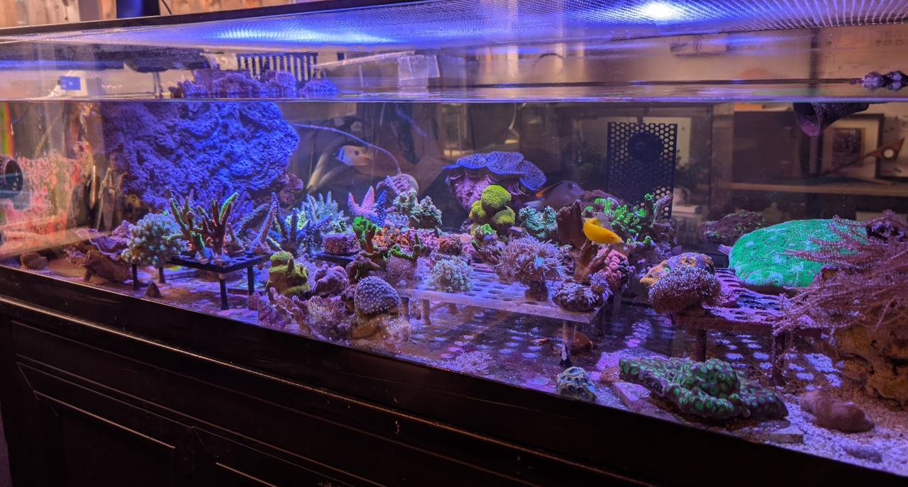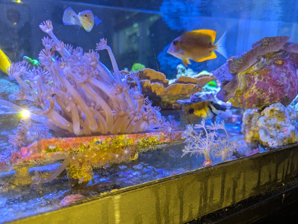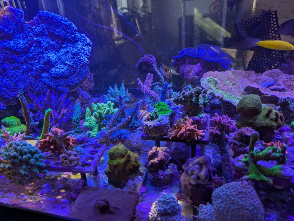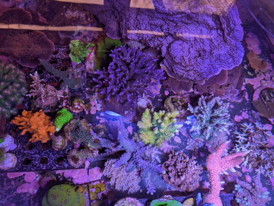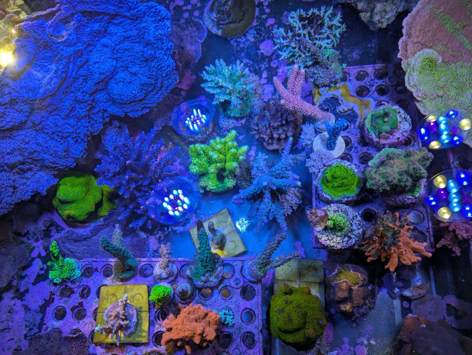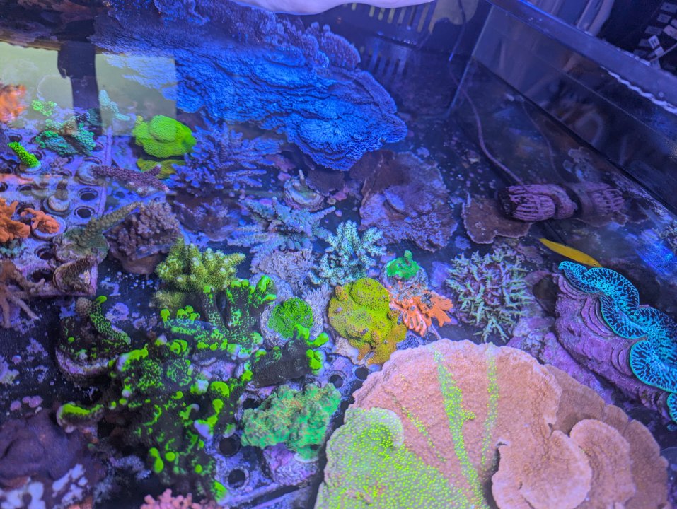 Some corals are semi bleached. I blame that on my media reactor having been offline for a bit, and a giant chalice (unpictured) causing chemical and stinger attacks.