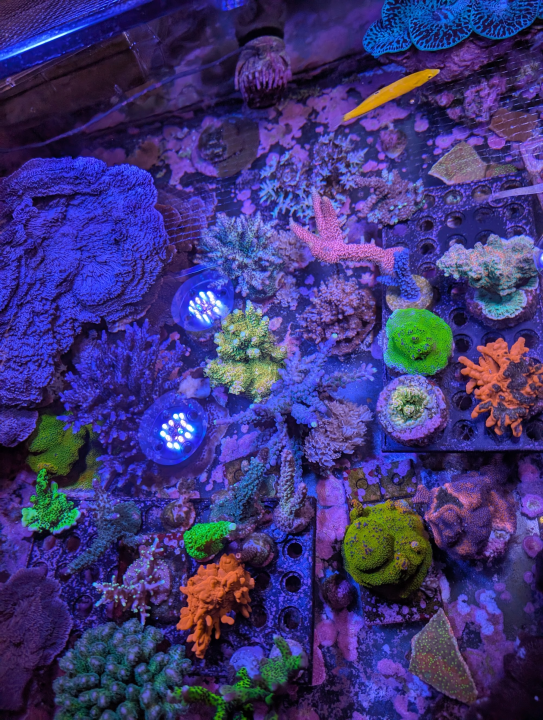 I've also somehow developed aptasia. I think I might've had it for awhile and my peppermint shrimp might've died off (it's always hidden in the giant Monti) allowing them to proliferate a bit. I just went through a F aptasia round and will give that another try at some point. Given it's a frag tank I could also start pulling things out and giving them a peroxide scrub, but not doing so yet.