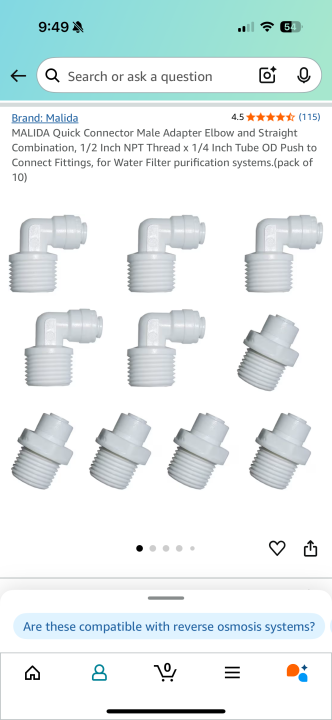 And get a 1/2" NPT to 1/4" push connect
