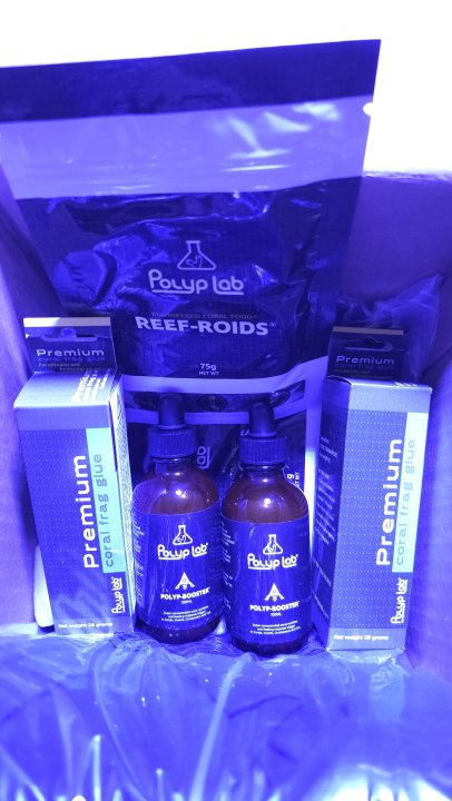 One day too late :confused: Sorry BAR. I tried to get it here on time. It's a couple bags of Reef Roids, 2 bottles of Polyp Booster, 2 packages of glue, and 2 shirts.