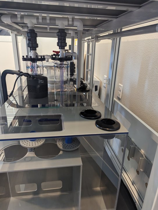 Got the drains cemented in today and the hole drilled for the power cord for the iPad display. I'm going to hard plumb the Vectra M2 tomorrow and then, on Thursday, I'll be able to do the remaining connections and pick up the L2 from @Coral reefer . Aiming to have water in it by Saturday!