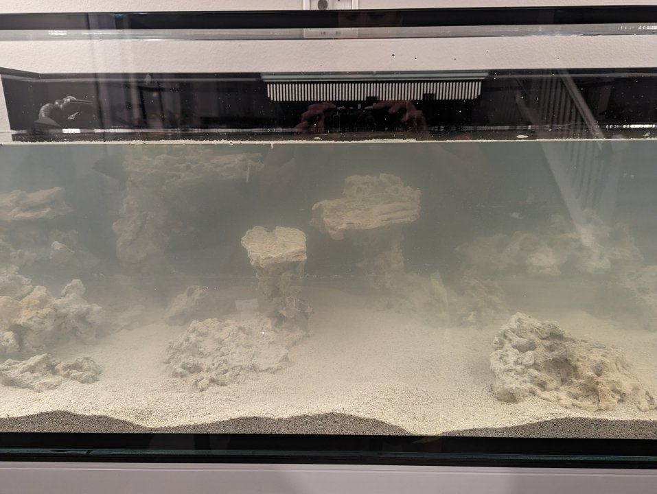 EDIT: Also, forgot to put this information earlier, but - in spite of ordering 160 lbs of special grade CaribSea Arag-Alive sand - we only used 120 lbs.