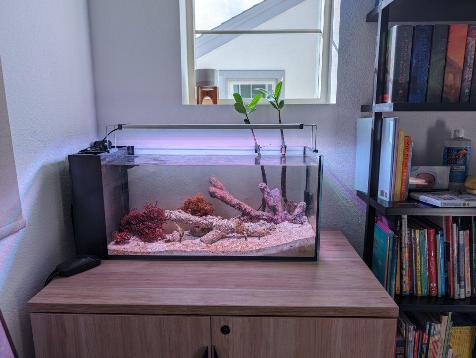While visiting the Frost Aquarium in Miami with family, my son got excited about seeing seahorses and wife asked if I could put them in my tank (obviously not). I took that as a green light to set up a new tank :p This will be a mangrove and macroalgae specific tank with seahorses and invertebrates like sexy shrimp.