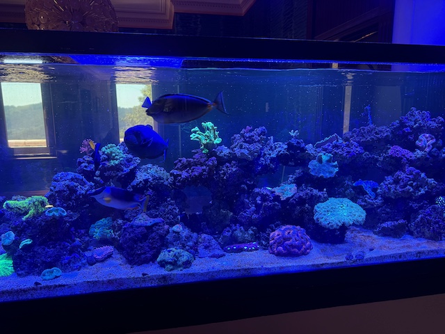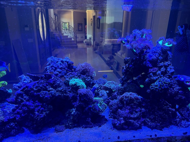 The larger tank had two rounds of corals added but no fish yet. We picked up a bunch of fish couple weeks ago but lost almost all of them from Velvet breakout while they were under observation. They were being quasi quarantined with the corals so we couldn’t treat them in time until the corals are moved out so that was a terrible hiccup. Max was in good spirit about the whole mess though but probably wanted to kick my butt, but he didn’t. So, that was pretty nice of him…lol.