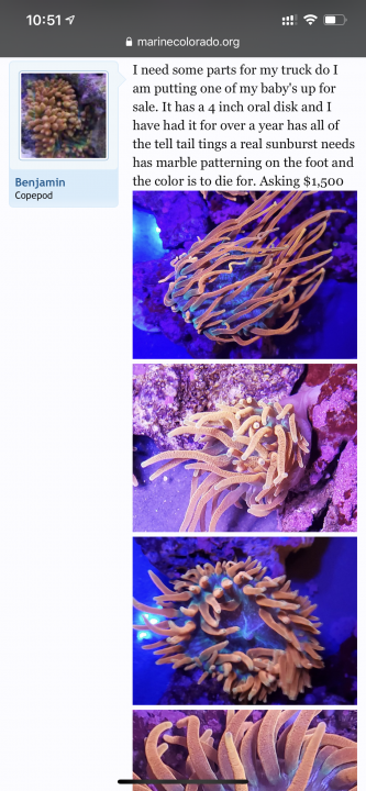 Went to Neptune’s today. Saw these anemones. The colors definitely shifted. Robert said he believes his supplier got them from Vietnam. The anemone with red and yellow tips color shifted and basically looks like a rose/rainbow now. Lol. However there is a yellow with a purple foot nem that looks reminiscent of a fake lemon drop anemone that looks pretty damn nice. Definitely not worth the $2500 price tag tho. Snapped a few pics but the blue leds make it look like a gbta and does it no justice. It’s pretty big at least 6-7” in this pic. Who wants to chip in, buy it and cut it? Lol