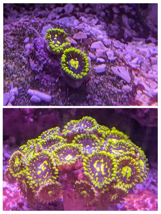 "Exosphere" zoanthids. Got them at the last frag swap and I think as a club we can tank the prices back to normal lol.Winning!