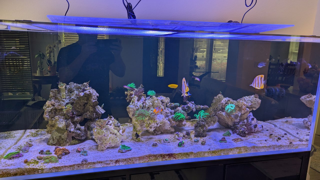 Nothing super exciting. Spread out the corals and going very low on the acclimation (15-100% over 45 days). Still need to get more tnutz and screws to finish mounting the ballasts. Green cyano is starting to disappear as the star found its way to the back. Added a third Vortech MP40 thanks to another driver board swap @boun11 and another chip I found in an old Vectra.