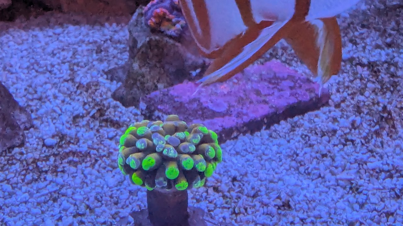 Couple SPS frags got fried, I probably should have acclimated them to the light before gluing. Kinda surprised given there's just the single A360XE.