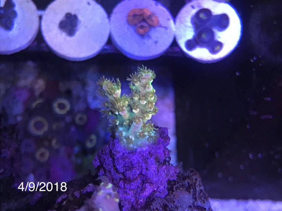 Not really. Just giving it time to settle down and color up. Most of the yellow corals in my tank go green. Some say its because of LEDs and that may be so. I may get together with Tim @ Unique Corals to do an ICP and go over how to get more yellow in my tank. He thinks its an imbalance or missing element.