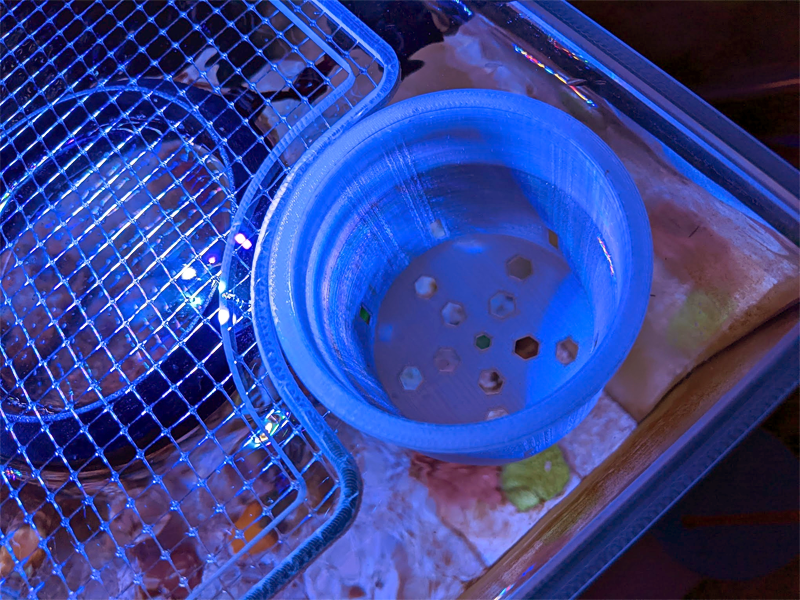Neptune tenuis #7. Nice and plump tissues. Hard to tell, but it's encrusting underneath and to the right. It's slowly losing the blues and picking up greens instead so it'll be interesting to see what it ends up looking like.