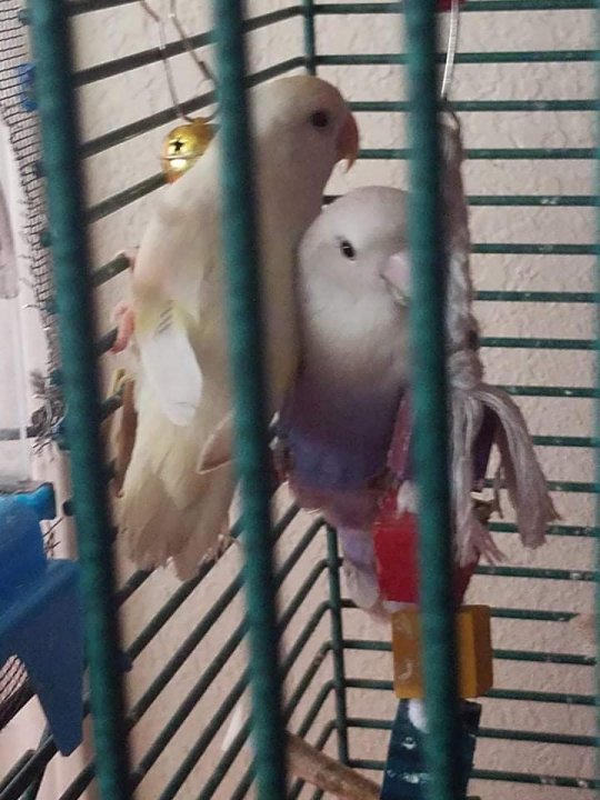 Two Love Birds. Pebbles(White) and Bam-Bam(Blue)!