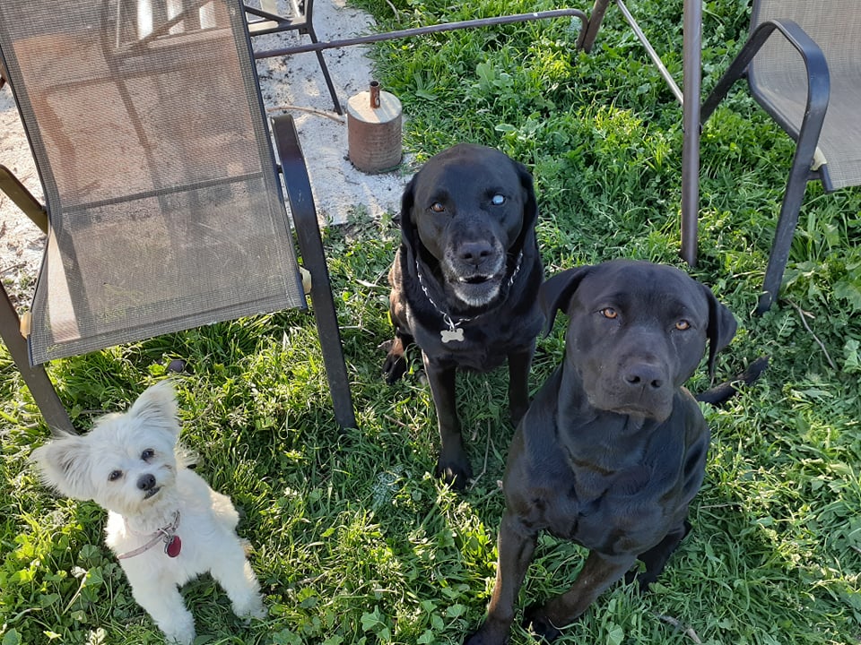 Dulli(Retriever) the oldest of the bunch, Zin Zin(Maltipoo) and my son's dog Midnight(Mastiff/Retriever mix?)