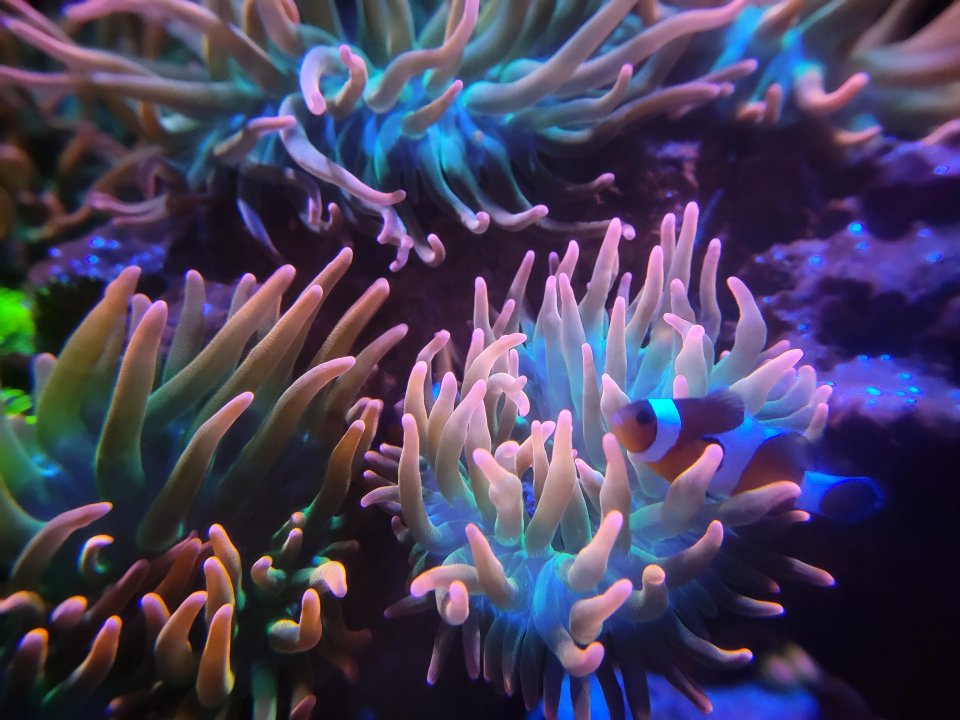 After a few hours, both sides of the anemone attached themselves to something in the cup and I used the par meter to take some measurements. After cutting the anemone, I thought it would be kind of rough for them so I lowered the lights using the AI prime acclimation mode set for 50% reduction on all levels going back to normal in 3 weeks.