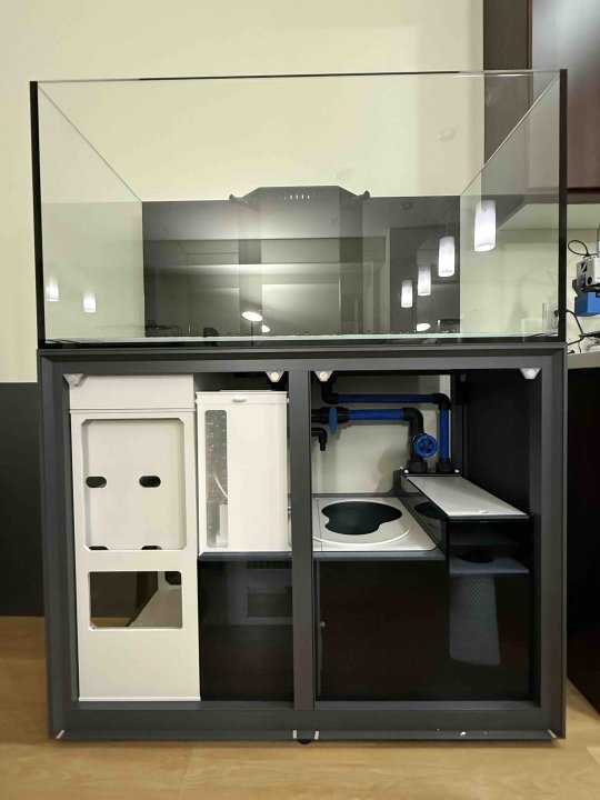 As of now the tank has already been filled and running for a week, getting ready for the transfer (door was damaged upon delivery, but the replacement is already on its way!). Threw a couple bio blocks in there from my old system and added new sand