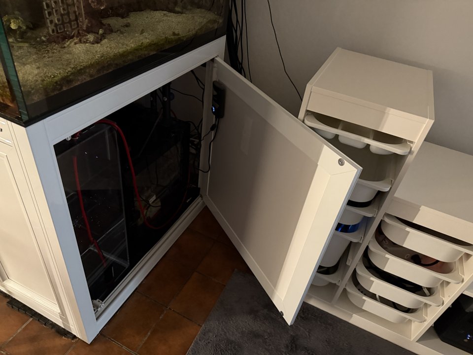 The 5L container overflowed briefly due to an issue with the Hydros collective not returning fully after feeding, including the return pump. The tank was not running through filtration for approximately 1.5 hours. When I remotely (big mistake) reactivated the devices, the skimmer pushed heavily into the container, which resulted in a mess. Unfortunately, my massive cable issue, which I had previously disclosed, was partially impacted by this, but nothing happened.