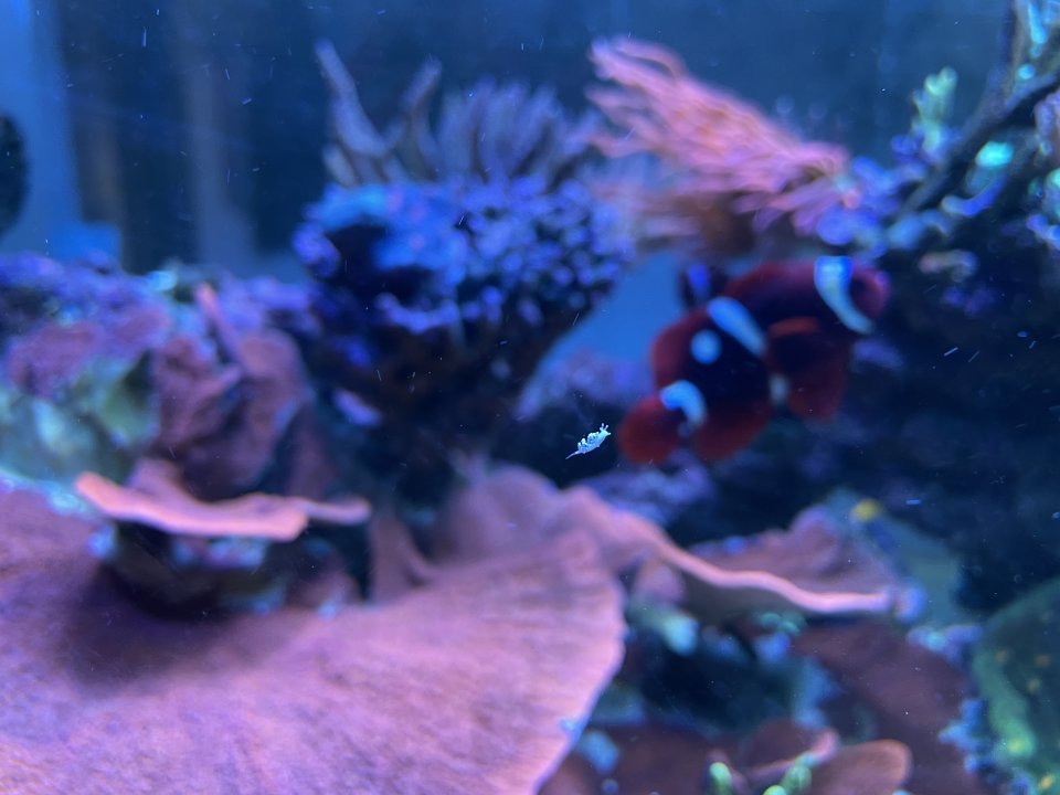 The purple pencil wrasse came out to eat today. Pictures don’t do it justice, it’s such a beautiful fish. Few things are more rewarding in reefing than seeing a newly introduced fish go from a shivering, fearful mess in the corner to a part of the community.