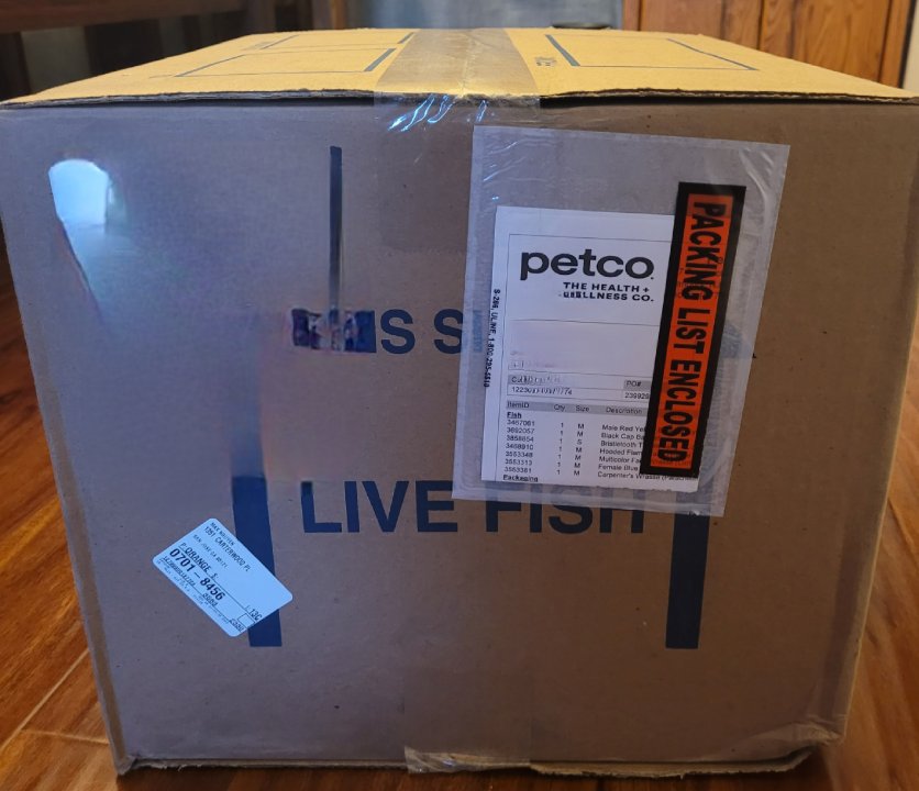 Right now the new fish are in a 5 gallon bucket with a bubbler, heater and original water from the bag. Going to toss the chaoti into the DT tomorrow and put these fish in the 14G.