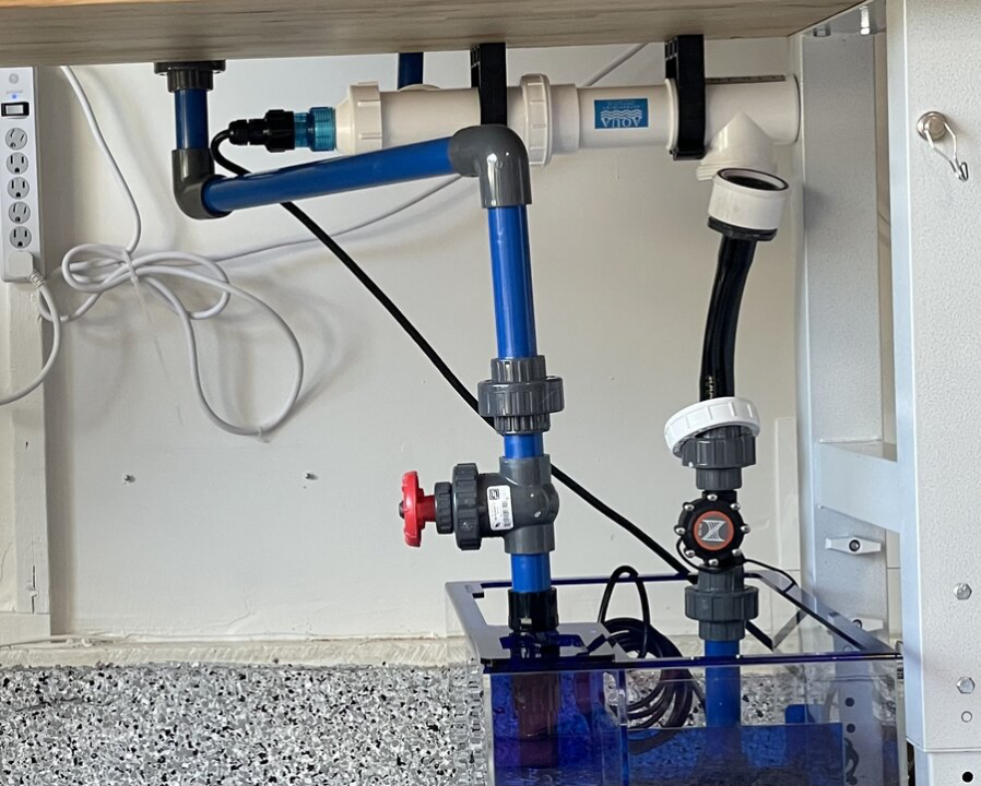 I removed the last few CUC members a few days ago and added them to my desktop tank (you can see it in the reflection in the picture above) and I just added about 150ml of Clorox to the tank to begin sterilizing it. I'm keeping the pumps running to let the bleach do its thing on the internals.