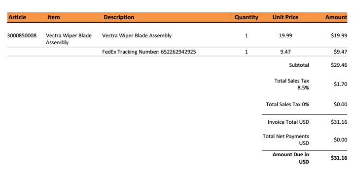The two parts were shipped separately since they didn't have the wiper blade in stock. They actually had it on backorder at the time and had to pull mine off from an existing vectra head cleaner (hence the separate shipping charges).