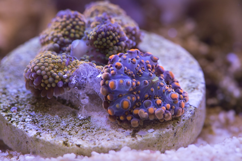 Not much happening to the tank. Added the ammonia and Dr. Tim's last Thursday and the tank has been just sitting and doing it's own thing. First signs of diatom showed up yesterday with some spots which has grown in size today. It probably started appearing over the weekend, but wasn't around to see it. The ATO is working well and looks like it'll be enough to last a week if I fill it up all the way to the top.