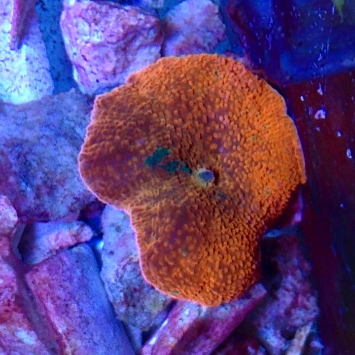 Candy crush jawbreaker mushrooms available. The mom I've had for about two years and has only developed a couple small green markings. Not sure if the color genetics are weak or I'm not giving it the optimal lighting/conditions to develop colors, but I'm interested to see if anyone can tease more color out. Either way, they're super bright orange mushrooms that will pop. I have 3 frags available that range in dime to quarter size. Pickup in Dublin or I'm occasionally in south bay.