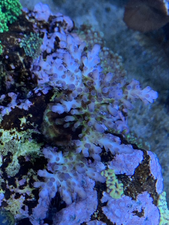 My frag is doing well and I love it. I left it on the plug for a while so when I removed it and placed it I lost some encrusting, but it’s already starting to come back and I’ve had growth along each branch. I already fragged off two 1” pieces so that those could be growing in parallel, but it will be a while until they are near the size I was given. I’ll take/post pics when I get a chance.