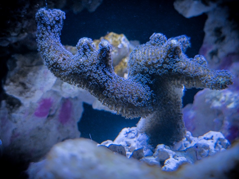 Taken with full actinic setting and highlighted with UV flashlight. Hard to capture it accurately, but it's close. These polyps are gorgeous with UV light.