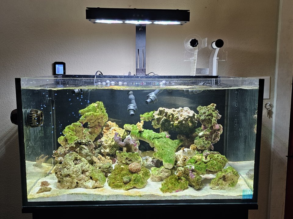 I haven't added any corals yet though, so we shall see how good they'll do to help with that. They are a little unsightly for some folks, but I'm trying to learn to ignore them. I figure eventually, when all the coral are in the there, it will be easy to ignore.