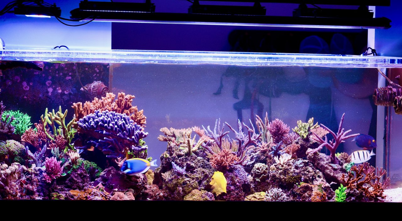 This tank was started as a reboot in May 2023. Previous tank was 1yr old, and experienced a nasty dino/bacterial crash a couple months after a tank upgrade earlier this year (https://bareefers.org/forum/threads...ed-dino-lyngbya-tank-crash.33717/#post-482310). It was a mixture of some kind of amphidinium dino and lyngbya bacteria that pretty much wiped everything out despite my best efforts.