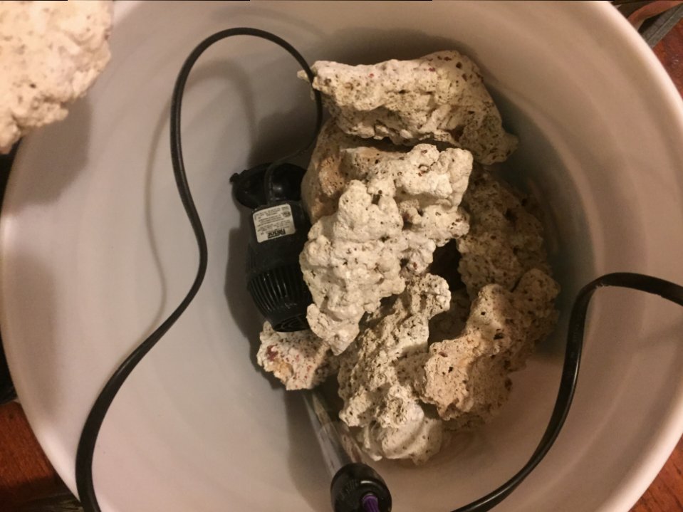 Since Im not interested in a nitrate phosphate bloom, im going to cure it in rodi water with a heater and powerhead. This will allow the nutrients to break up and leach into the water and not my tank.