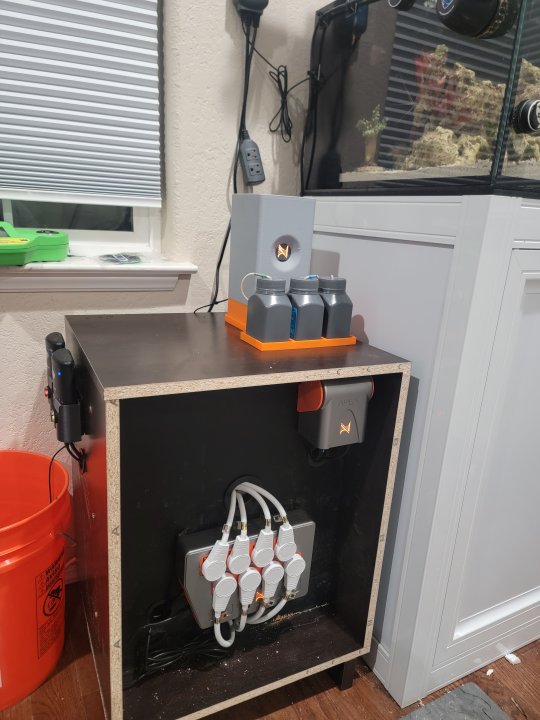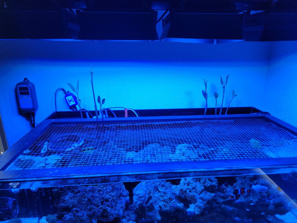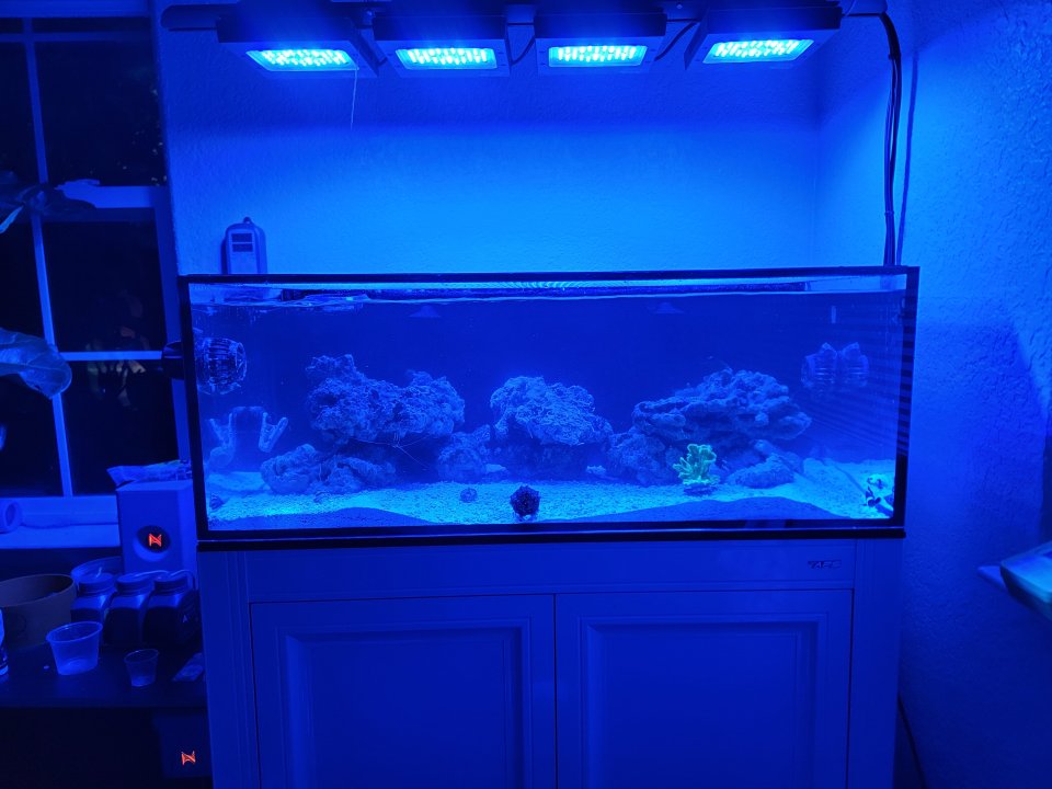Added more live rock to hopefully deal with a slight ammonia spike. I also hooked up all my lights. I've got them set to 5% intensity right now. I don't have any coral in there and I need the par meter.