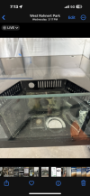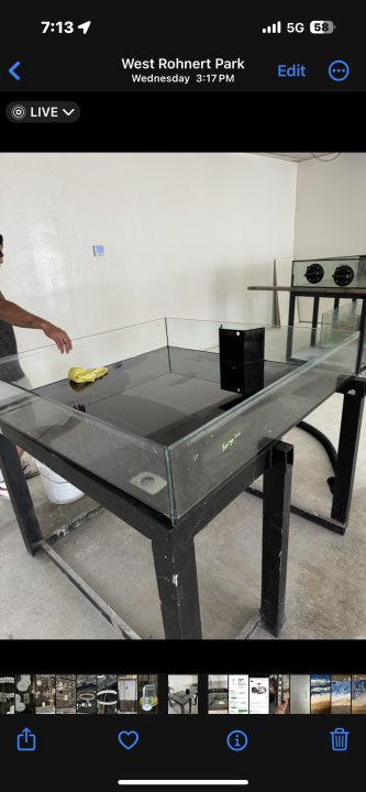 Hi we have a glass 4’.4’ frag tank with an aluminum frame that we will not be using in the new location. The glasses in good condition, the frame has adjustable feet, but could use a little love as the paint is peeling back in a few spots. I will also throw in a 45 gallon glass sump.