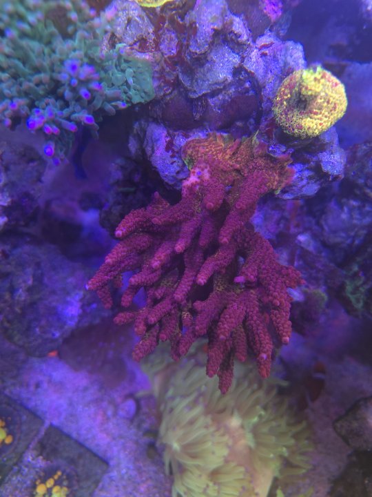 Latest image of mine, unfortunately it browned out on me again 2 months ago, and developed red cyano On the tip and I lost the part that started to encrust. At the time I swapped wavemakers and my alk fell to 5. I got the numbers back up again a few weeks ago. I clipped the dead tip last night off in hopes given time and more stability it will return to health.