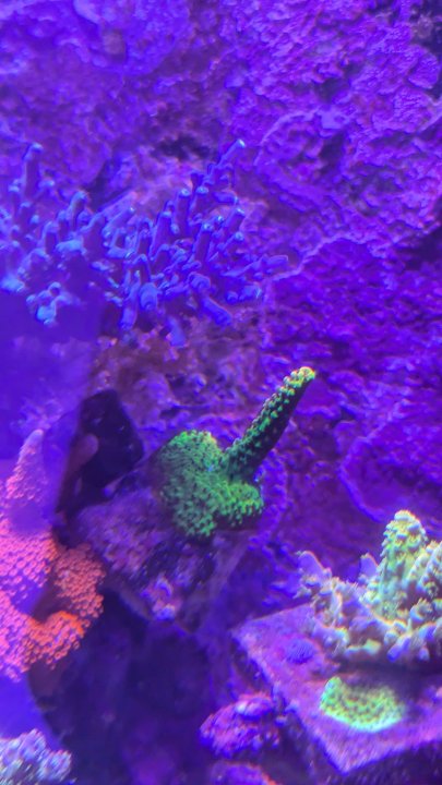Fantastic growth shooting out!Starting to get some nice colors - the new growth in particular now has this pretty pearly blue color with magenta tips.