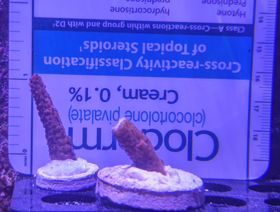 Day 1. Back left is contest frag. Right front is the Seatak test (not part of the contest) to test if it truly does encrust faster.