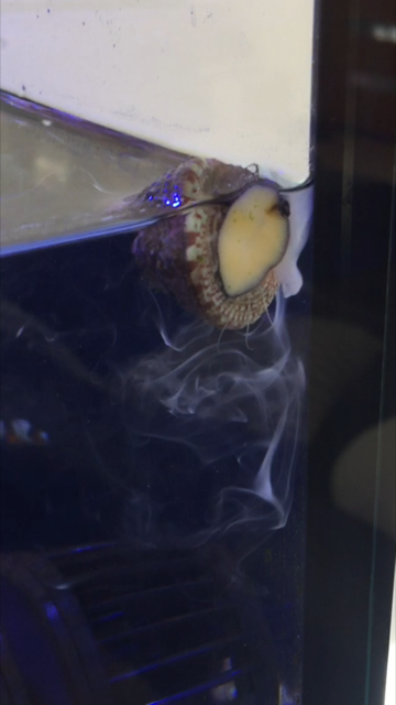 The pH change may have triggered my trochus snails to spawn. Half a dozen snails were up top on the glass spewing clouds of milky stuff.