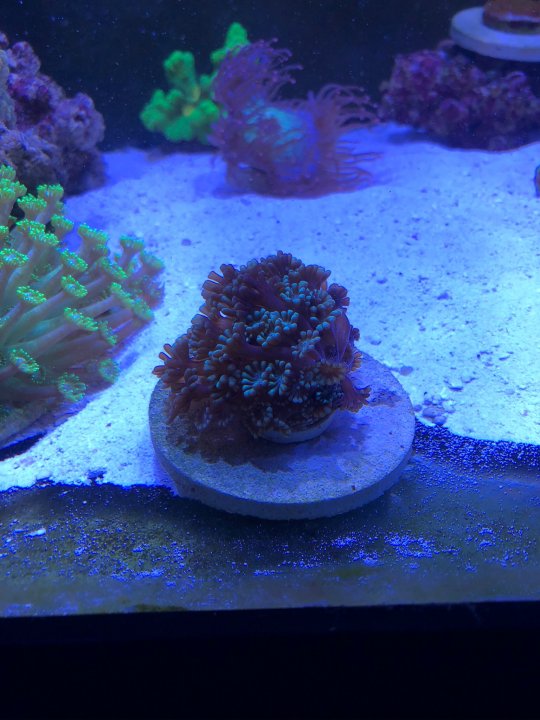 I picked up the coral yesterday. These are some really great pieces to be growing out, mine has atleast 70 polyps! Super hard to count though. Thanks @The_Lazy_Reefer for the frag!