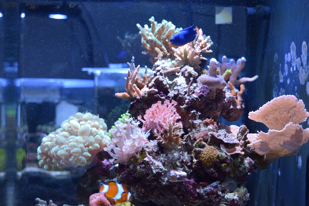 regarding filtration. I got rid of the stock filtration. Back chamber is all LR rubble (from my BC29), Return pump is Rio+ 90, and a heater (aqueon 20W). I do 90% WC weekly, religiously. If I find anything out of bound (zoas are not opening, or algae or anything dirty), I throw in a small amount of BRS carbon. Couple of months before I added an AquaClear 20 HoB filter. But I only use it thursday -> saturday, occasionally. I have an air pump hooked to. At times I use it, in-stead of the filtration (medications, chemiclean to cleanse the tank).