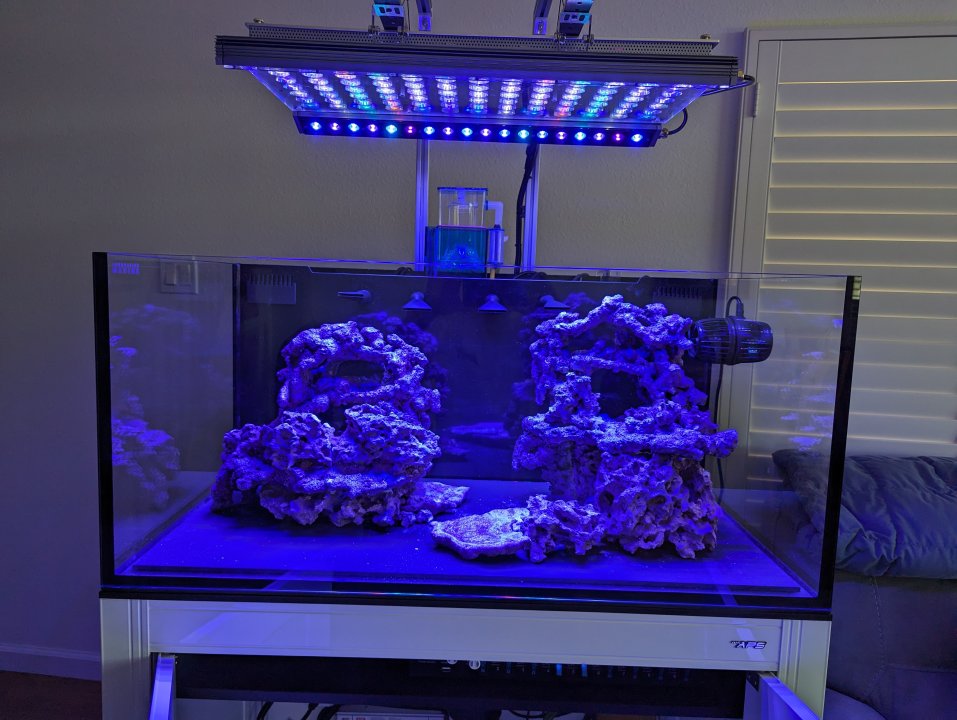 Thanks!Awesome setup! I’ll be following along. I’m debating between this tank or the smaller 50 version at the moment. Where did you find that tray? For the ATO reservoir, do you plan on using a lid or keeping it open top?