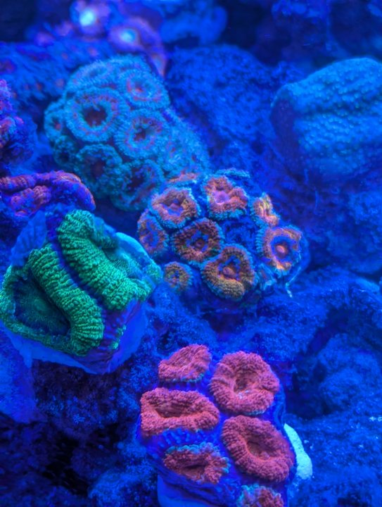 They are coloring up well since I cut the OR3's down to 1.5 hours dawn and dusk and 2 hours at peak. It's really more like 600 PAR for 7 hours and 700 for 2 hours.