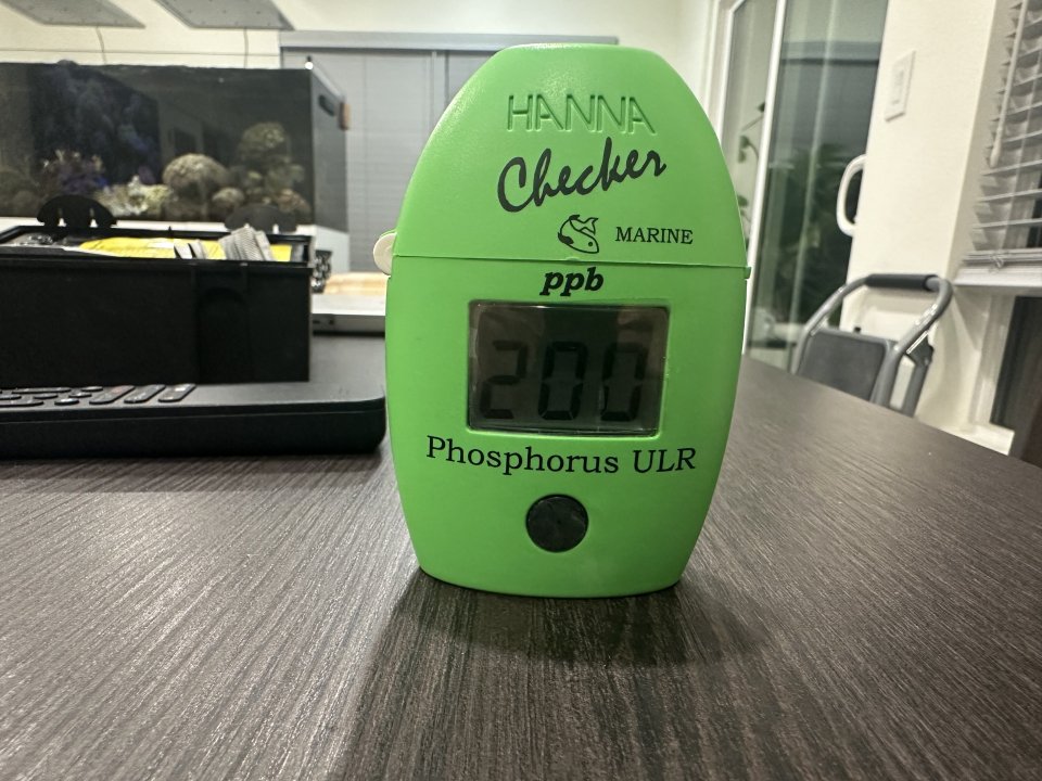 Corals are fine and are growing. Alkalinity consumption has increased slightly. There is algae growth, but I think it is normal. I guess i'll feed less to slow down my nutrient import. I had my auto-feeder feed 3x daily on a 2 minute feed + my manual feeding of frozen mysis. I've turned it down to 30 second feed after seeing that high phos reading. Feeding heavily really increases nutrients..lol. I'm already doing a 1.4% daily AWC (30-40%/month). I think I can control my nutrients by feeding less.